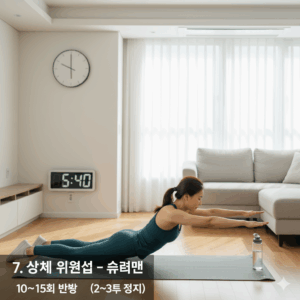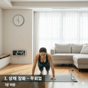 홈트레이닝에서 가장 중요한 건 절대 무리하지 않는 거예요. 각 동작의 정확한 자세를 유튜브 영상이나 다양한 자료를 통해 한번 확인하고, 천천히 따라 해보는 게 좋습니다. 아프거나 불편한 느낌이 오면 동작을 즉시 멈춰주세요.