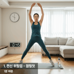이제 본격적으로 10분간 따라 할 수 있는 홈트레이닝 동작들을 단계별로 소개해드릴게요. 각 동작은 약 1분씩, 총 10가지 동작을 하시면 10분 루틴이 완성됩니다. 동작 사이에 10~20초 정도의 휴식을 가지면 더 효율적으로 운동 효과를 볼 수 있어요.